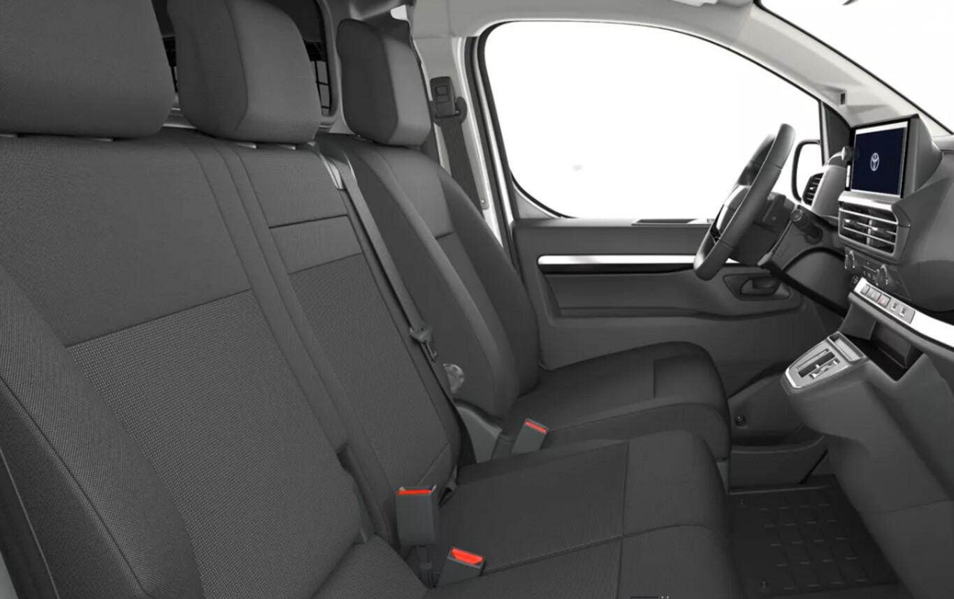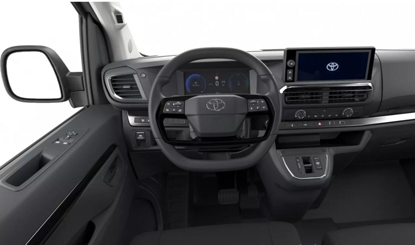 12V Steckdose, Adaptive Geschwindigkeits-Regelanlage (ACC), Anhängerkupplung Vorbereitung, Audiosystem Radio mit 10 Zoll Farb-Touchscreen, Beifahrerairbag deaktivierbar, Bluetooth Freisprecheinrichtung, Einschaltautomatik für Fahrlicht, Fahrersitz mit Armlehne, Garantie 3 Jahre oder 100.000 km, Gepäckraum beleuchtet, Handschuhfach beleuchtet, Heckflügeltüren mit 180° Öffnungswinkel, Kombiinstrument Digital 10 Zoll, Laderaumtrennwand mit Fenster, Laderaumverlängerung durch Toyota Smart Cargo auf 4.024mm, Lenkrad heizbar (Leder) mit Multifunktion, Navigation in Verbindung mit dem Smartphone (über Apple Carplay / Android Auto /...), Nebelscheinwerfer, Notrufsystem, Reifen 215/65 R16, Rückfahrkamera, Sicherheitsgurt Warnfunktion, Smartphone Schnittstelle Wireless Mirror Link (Apple CarPlay & Android Auto), Sprachsteuerung, Stahlfelgen 16 Zoll, Stoßfänger vorn und hinten schwarz, USB-Schnittstelle, Comfort-Paket (Klimaanlage / Fensterheber vorn elektr. mit Einklemmschutz / Zentralverriegelung mit Fernbedienung / Außenspiegel elektr. verstell- und heizbar / Außenspiegel heizbar), Sicht-Paket (Fahrassistenz-System: Fernlichtassistent (Abblendautomatik Fahrlicht, AHB) / Scheibenwischer mit Regensensor), Toyota Smart Cargo (Beifahrersitzbank hochklappbar (Durchlademöglichkeit)), Audiosystem: Radio (4 Lautsprecher / DAB-Tuner (Radioempfang digital)), Beifahrerdoppelsitz, Elektr. Bremskraftverteilung, Elektromotor 100 kW, Geschwindigkeits-Begrenzeranlage, Heckflügeltüren ohne Verglasung, HV-Batterie 75 kWh, Innenspiegel abblendbar, Karosserie/Aufbau: Kasten, Ladekabel mit Schukostecker (Mode 2), Ladekabel mit Typ 2-Stecker (Mode 3), Lendenwirbelstütze Sitz vorn links, Lenksäule (Lenkrad) verstellbar, Parkbremse elektrisch (EPB), Radstand 3275 mm, Reserverad in Fahrbereifung, Schiebetür Fahrgast-/Laderaum rechts, Sitz vorn links höhenverstellbar, Sitzausstattung: 3-Sitzer, Anti-Blockier-System (ABS), Bremsassistent, Fahrassistenz-System: Pre-Collision-System (PCS), Antriebsart: Frontantrieb, Elektron. Stabilitäts-Programm (VSC), Getriebe für Elektrofahrzeug, Airbag Fahrer-/Beifahrerseite, Bordcomputer, Verglasung getönt, Fahrassistenz-System: Berganfahrkontrolle (HAC), Fahrassistenz-System: Verkehrszeichenerkennung (RSA), Audio-/Radio-Fernbedienung am Lenkrad, Servolenkung elektrisch, Tagfahrlicht, Einparkhilfe hinten, Fahrassistenz-System: Müdigkeitserkennungs-Sensor, Fahrassistenz-System: Spurhalteassistent (LDA), Reifendruck-Kontrollsystem